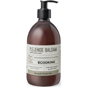 Ecooking Plejende Balsam er en plejende og fugtgivende conditioner, som passer til et normalt og t�rt h�r. Den virker styrkende p� h�ret, og efterlader det silkebl�dt. Formlen er beriget med et fugtkompleks, der b�de tilf�rer h�ret en masse fugt, samt vir