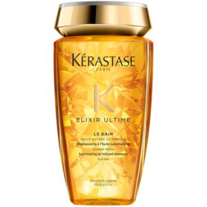 K�rastase Elixir Ultime Le Bain Shampoo er en luksuri�s shampoo, der kan anvendes af alle h�rtyper. Den unikke formel indeholder 5 �dle olier, der hver is�r g�r ind med sine fantastiske egenskaber og fremh�ver h�rets sk�nhed. H�ret bliver n�ret fra rod ti