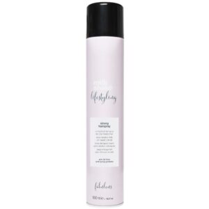 Milk_shake Lifestyling Strong Hairspray er en st�rk letv�gtet h�rspray til farvet h�r, der giver et kontrolleret hold. Denne h�rspray er med UV-filter, hvilket beskytter h�rfarven mod solens str�ler, s� den ikke falmer. Den efterlader dit h�r meget naturl