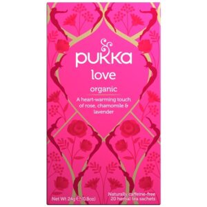Pukka Love Te er en sk�n, blomstrende og �kologisk te, der booster af k�rlighed. Denne l�kre te er en blanding af velduftende og blomster og urter, der tilsammen udg�r den perfekte smags kombination. Bring lidt mere k�rlighed ind hverdagen med denne natur