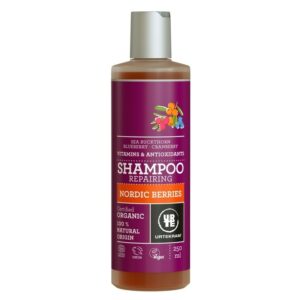 Urtekram Nordic Berries Shampoo er en l�kker og utrolig velduftende shampoo, der reparerer h�ret i dybden, og holder hovedbunden i balance. Den er rig p� vitaminer og antioxidanter, samt vilde b�r, der tilf�rer h�ret den rette m�ngde n�ring, og har en bl�